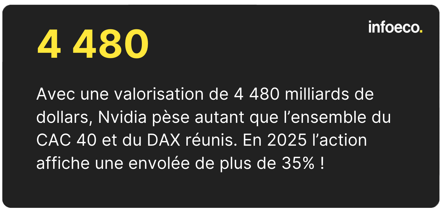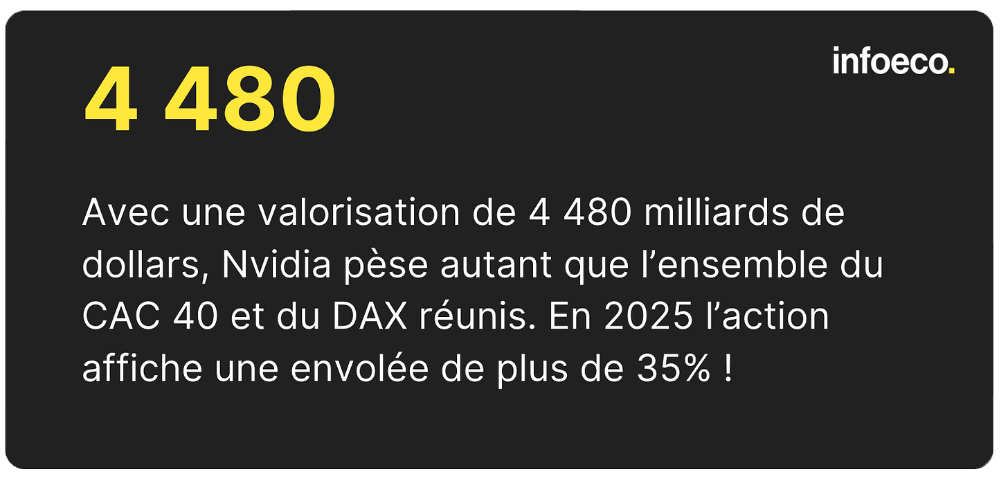Mais derriĂšre lâeuphorie, les signaux dâalerte se multiplient. Les valorisations amĂ©ricaines dĂ©passent dĂ©sormais les niveaux observĂ©s lors de la bulle Internet ou de la crise de 2008. Le poids des « sept magnifiques » (Apple, Microsoft, Alphabet, Amazon, Meta, Tesla, Nvidia) a atteint des proportions inĂ©dites, Ă tel point que la trajectoire de lâensemble du marchĂ© dĂ©pend presque exclusivement de lâhumeur autour de lâIA. Nvidia, valorisĂ©e 4 300 Mds $, pĂšse Ă elle seule autant que le CAC 40 et le DAX rĂ©unis.
